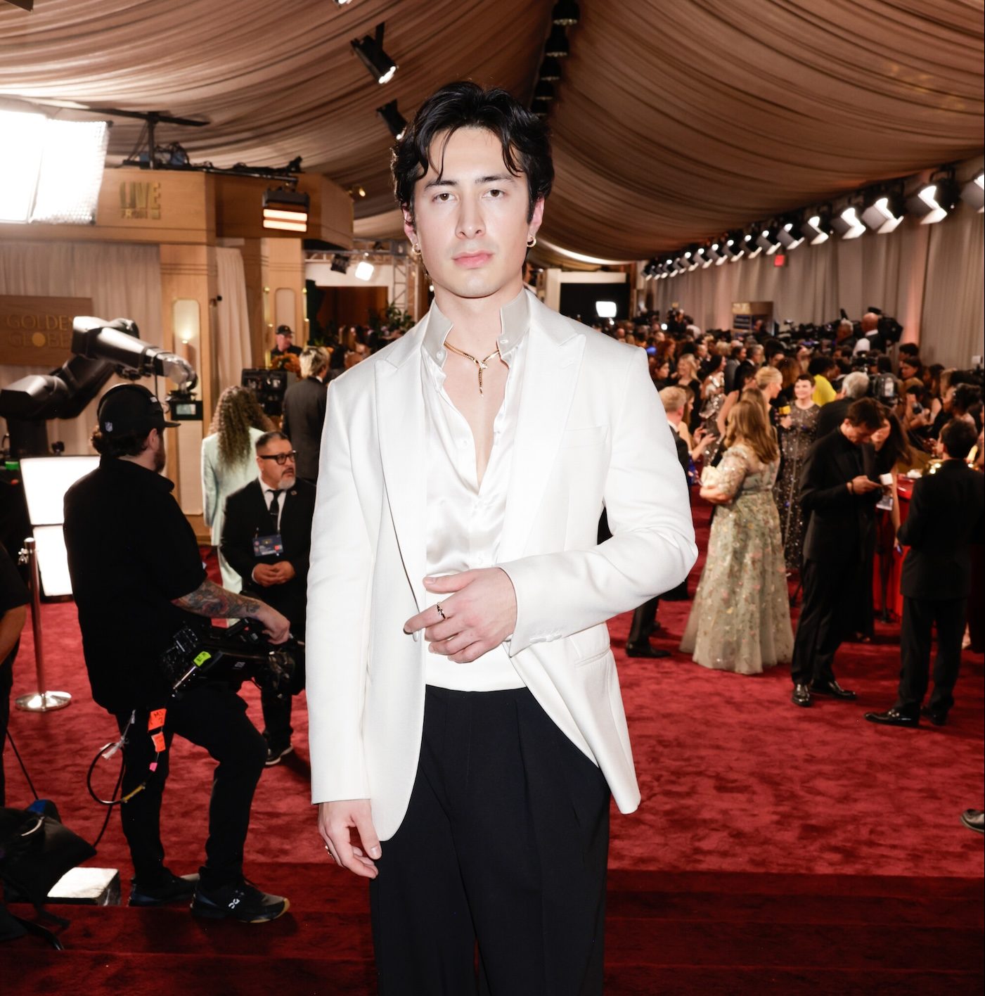 Hudson Williams at the 83RD ANNUAL GOLDEN GLOBES®, airing live from the Beverly Hilton in Beverly Hills, California on Sunday, January 11, 2026 at 8 PM ET/5 PM PT, on CBS and streaming on Paramount+. Photo: Francis Specker/CBS ©2026 CBS Broadcasting, Inc. All Rights Reserved.