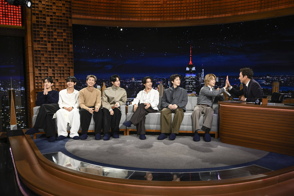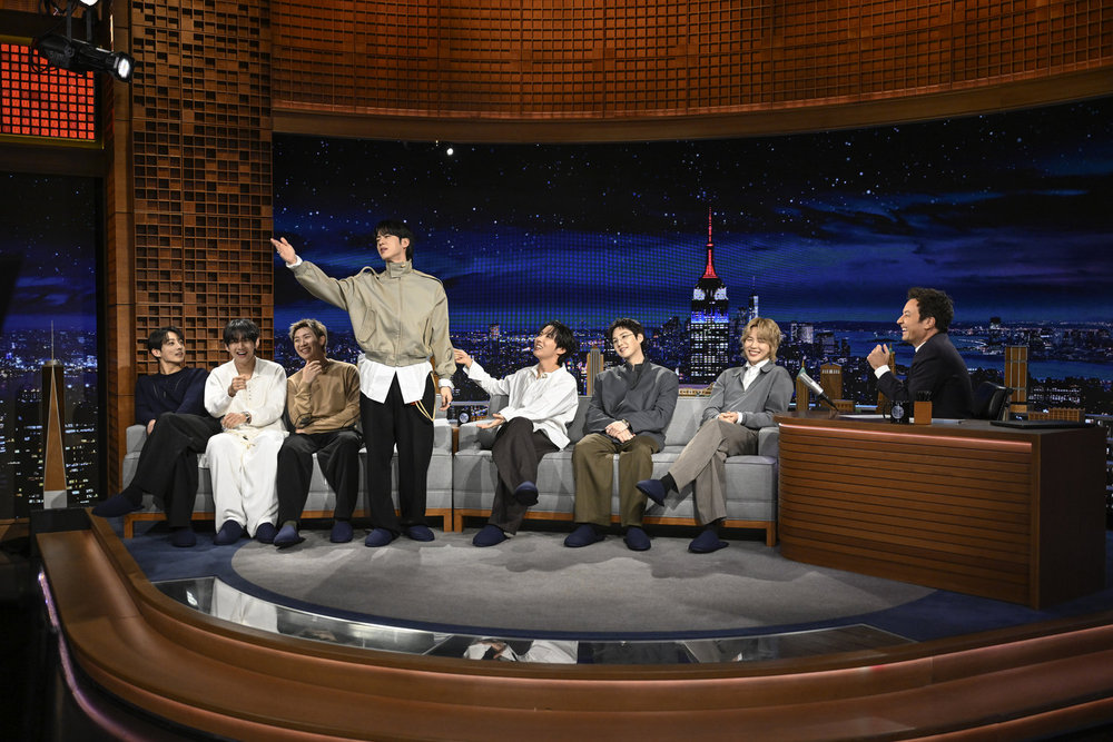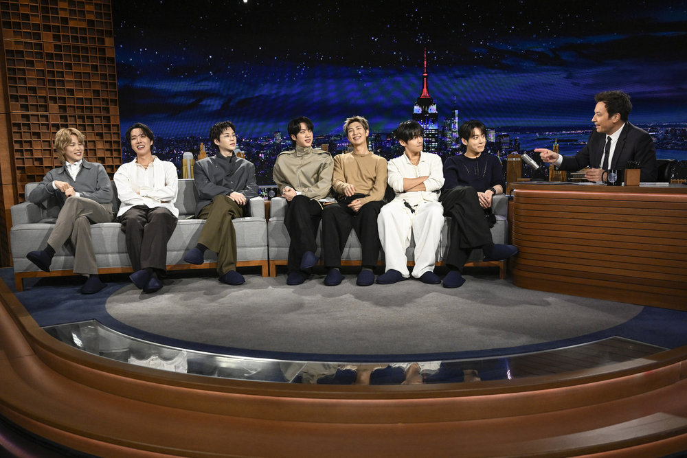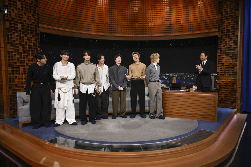 THE TONIGHT SHOW STARRING JIMMY FALLON — Episode 2272 — Pictured: Musical guest BTS performs on Wednesday, March 25, 2026 — (Photo by: Todd Owyoung/NBC)THE TONIGHT SHOW STARRING JIMMY FALLON — Episode 2272 — Pictured: Musical guest BTS performs on Wednesday, March 25, 2026 — (Photo by: Todd Owyoung/NBC)THE TONIGHT SHOW STARRING JIMMY FALLON — Episode 2272 — Pictured: Musical guest BTS performs on Wednesday, March 25, 2026 — (Photo by: Todd Owyoung/NBC)THE TONIGHT SHOW STARRING JIMMY FALLON — Episode 2272 — Pictured: Musical guest BTS poses after their performance on Wednesday, March 25, 2026 — (Photo by: Todd Owyoung/NBC)THE TONIGHT SHOW STARRING JIMMY FALLON — Episode 2272 — Pictured: (l-r) Jimin, j-hope, Suga, Jin, RM, V, and Jung Kook of musical guest BTS during an interview with host Jimmy Fallon on Wednesday, March 25, 2026 — (Photo by: Todd Owyoung/NBC)THE TONIGHT SHOW STARRING JIMMY FALLON — Episode 2272 — Pictured: (l-r) Jung Kook, V, RM, Jin, j-hope, Suga, and Jimin of musical guest BTS during an interview with host Jimmy Fallon on Wednesday, March 25, 2026 — (Photo by: Todd Owyoung/NBC)THE TONIGHT SHOW STARRING JIMMY FALLON — Episode 2272 — Pictured: (l-r) Jung Kook, V, RM, Jin, j-hope, Suga, and Jimin of musical guest BTS during an interview with host Jimmy Fallon on Wednesday, March 25, 2026 — (Photo by: Todd Owyoung/NBC)THE TONIGHT SHOW STARRING JIMMY FALLON — Episode 2272 — Pictured: (l-r) Jung Kook, V, Jin, j-hope, Suga, RM, and Jimin of musical guest BTS arrive to their interview with host Jimmy Fallon on Wednesday, March 25, 2026 — (Photo by: Todd Owyoung/NBC)