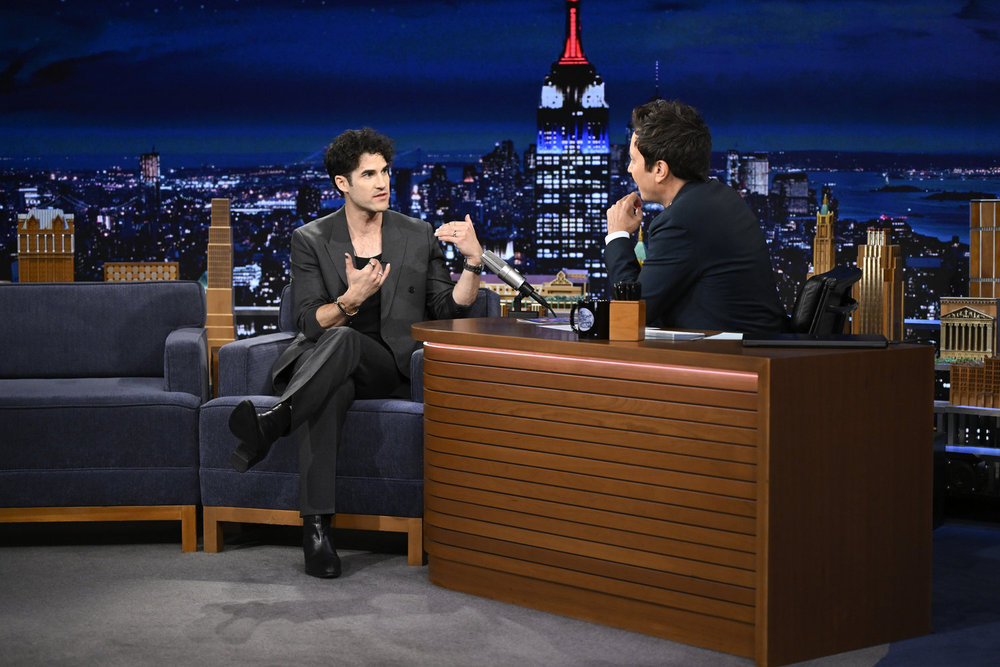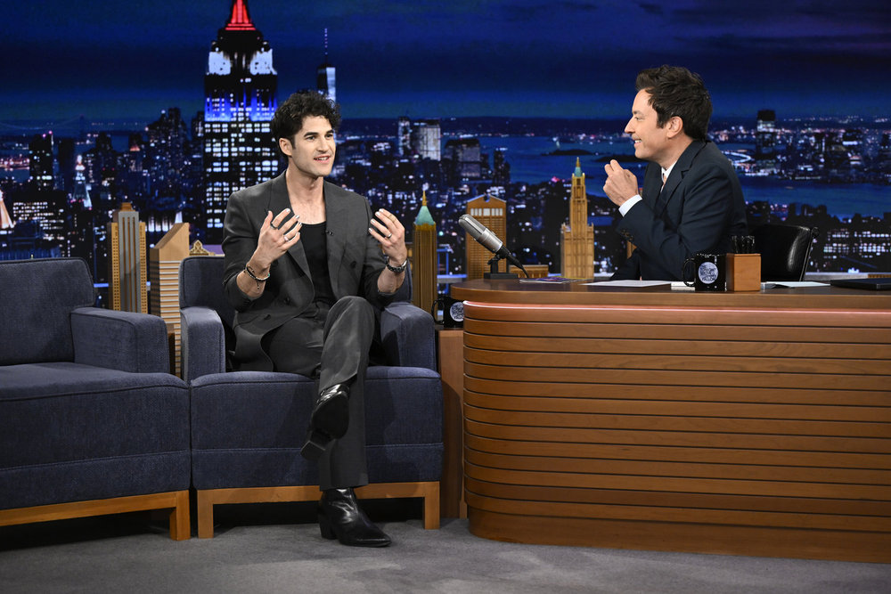 THE TONIGHT SHOW STARRING JIMMY FALLON — Episode 2278 — Pictured: (l-r) Actor Darren Criss during an interview with host Jimmy Fallon on Monday, April 20, 2026 — (Photo by: Todd Owyoung/NBC)