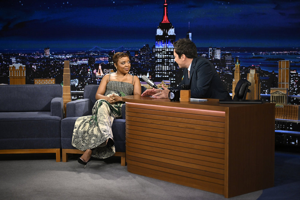 THE TONIGHT SHOW STARRING JIMMY FALLON -- Episode 2278 -- Pictured: (l-r) Actress Quinta Brunson during an interview with host Jimmy Fallon on Monday, April 20, 2026 -- (Photo by: Todd Owyoung/NBC)