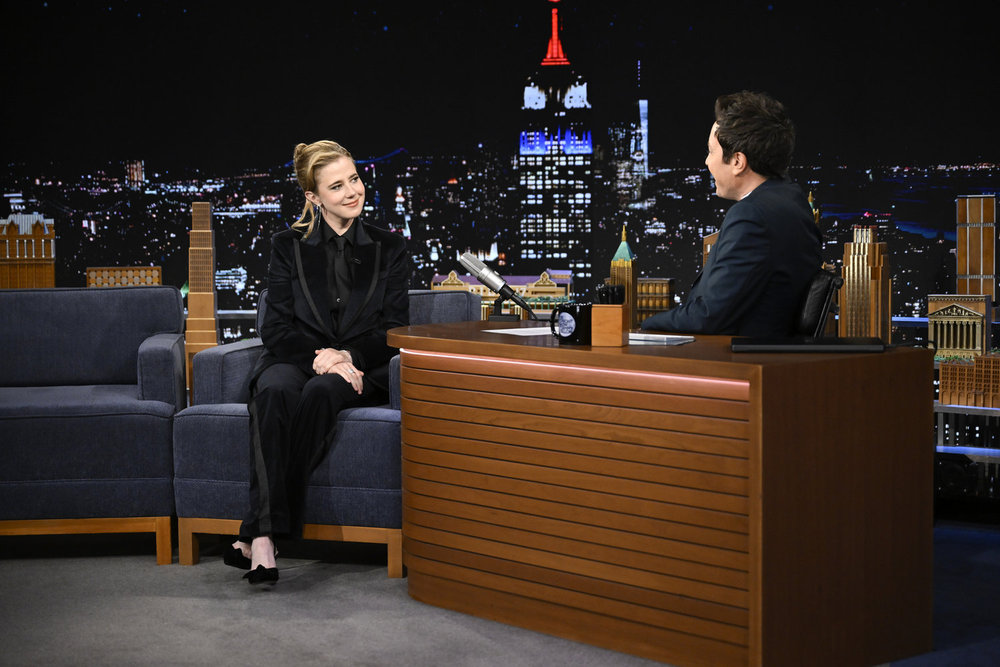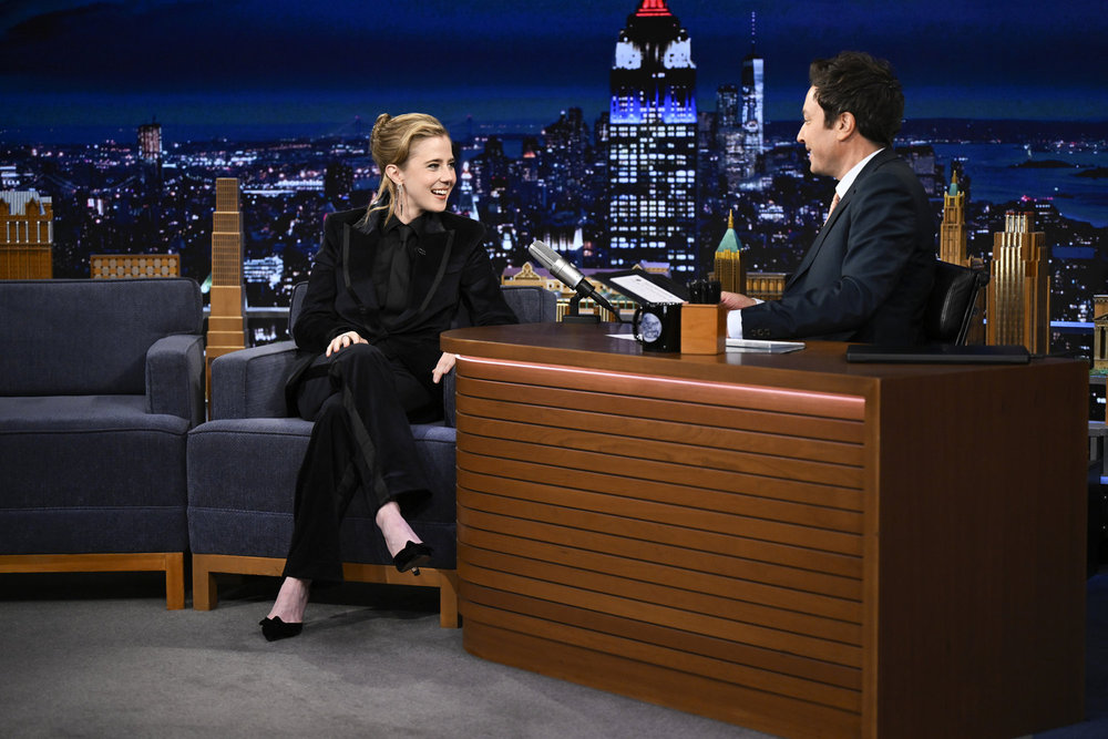THE TONIGHT SHOW STARRING JIMMY FALLON — Episode 2278 — Pictured: (l-r) Actress Taylor Dearden during an interview with host Jimmy Fallon on Monday, April 20, 2026 — (Photo by: Todd Owyoung/NBC)